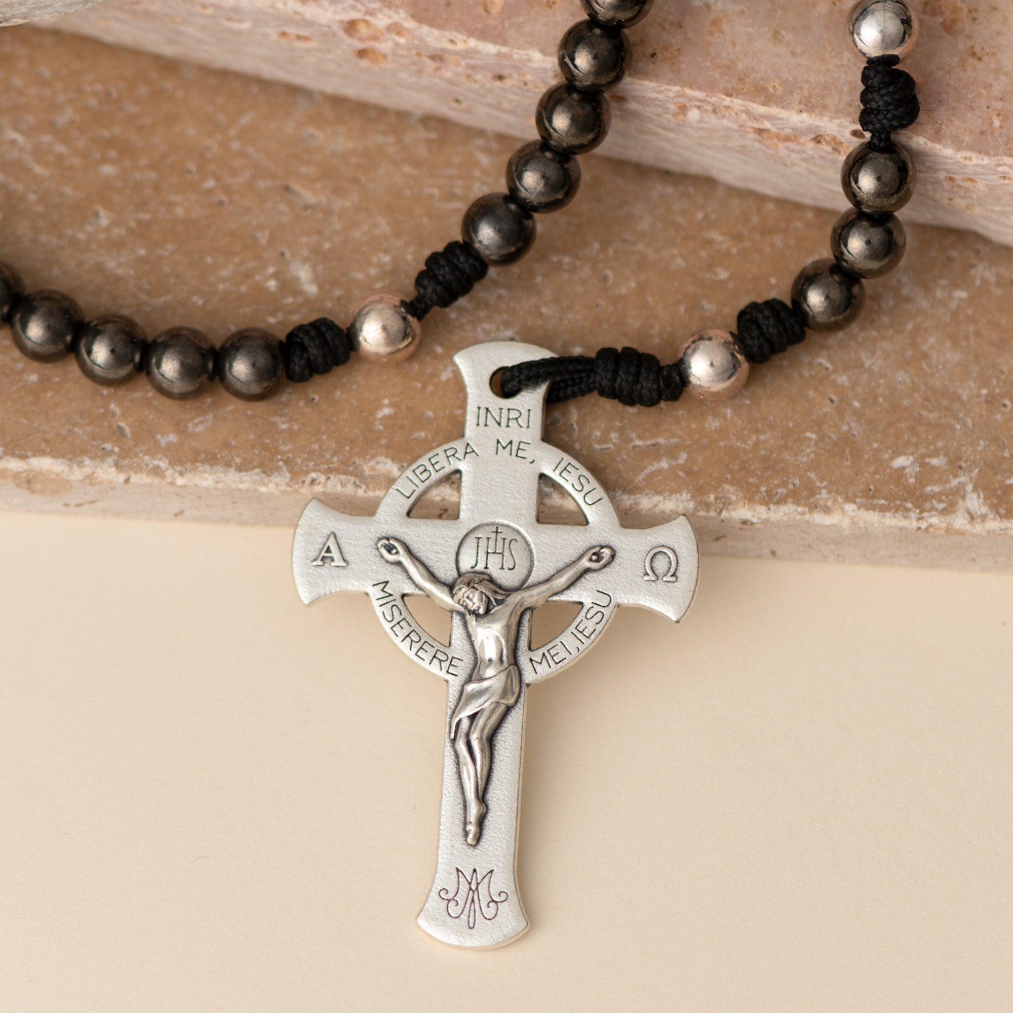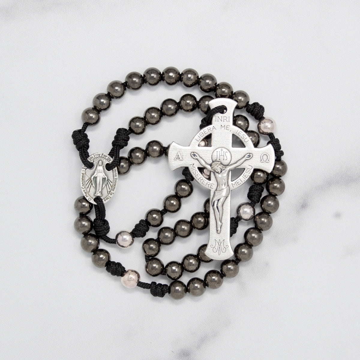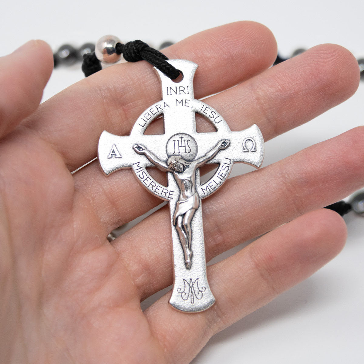 Black and Silver Deliverance Cross Rosary