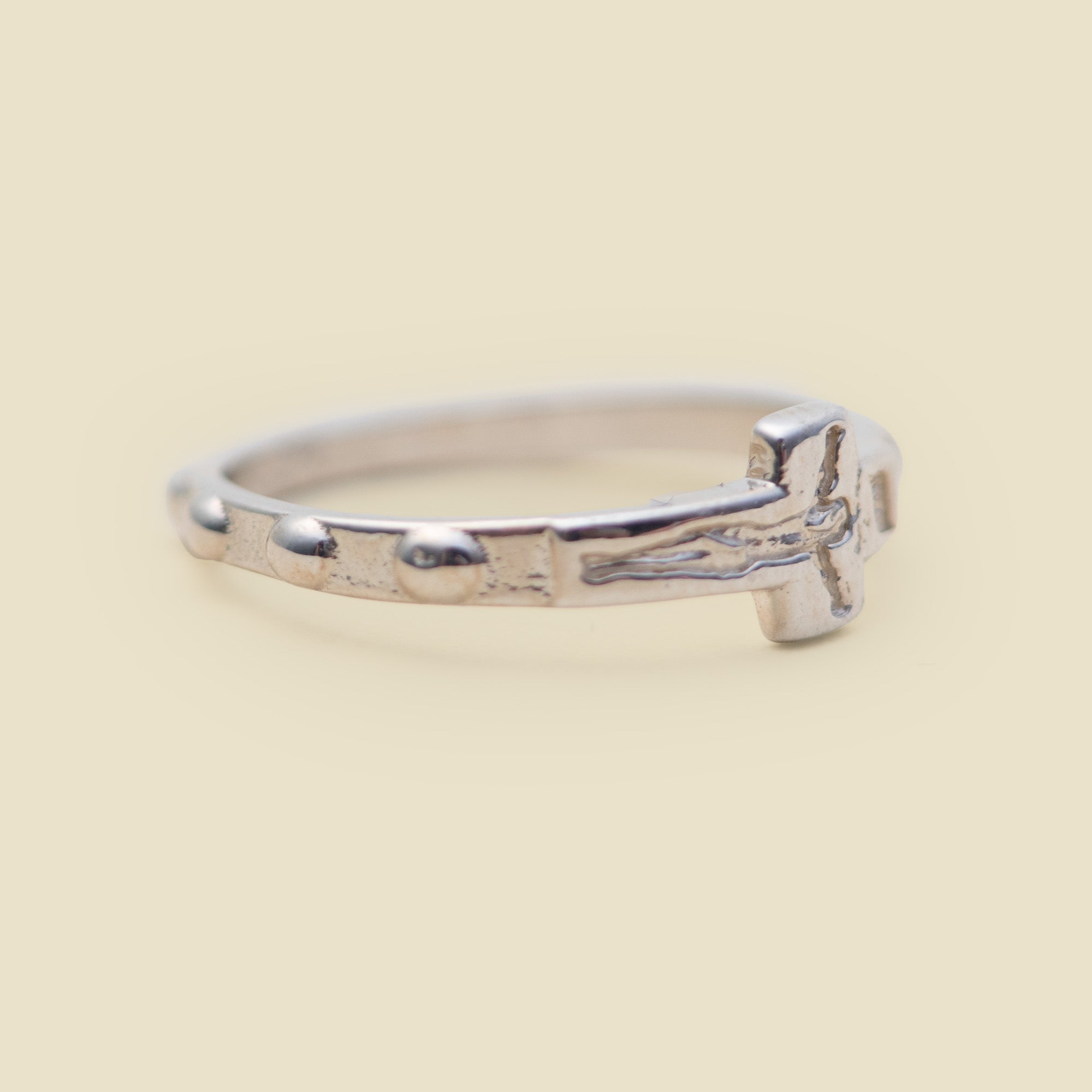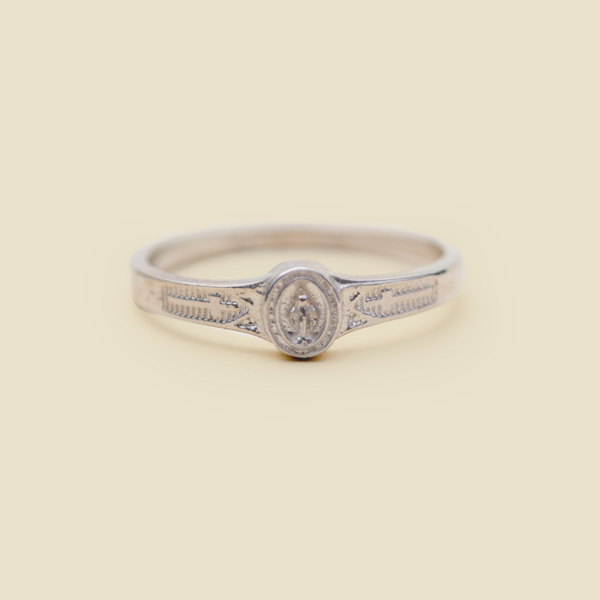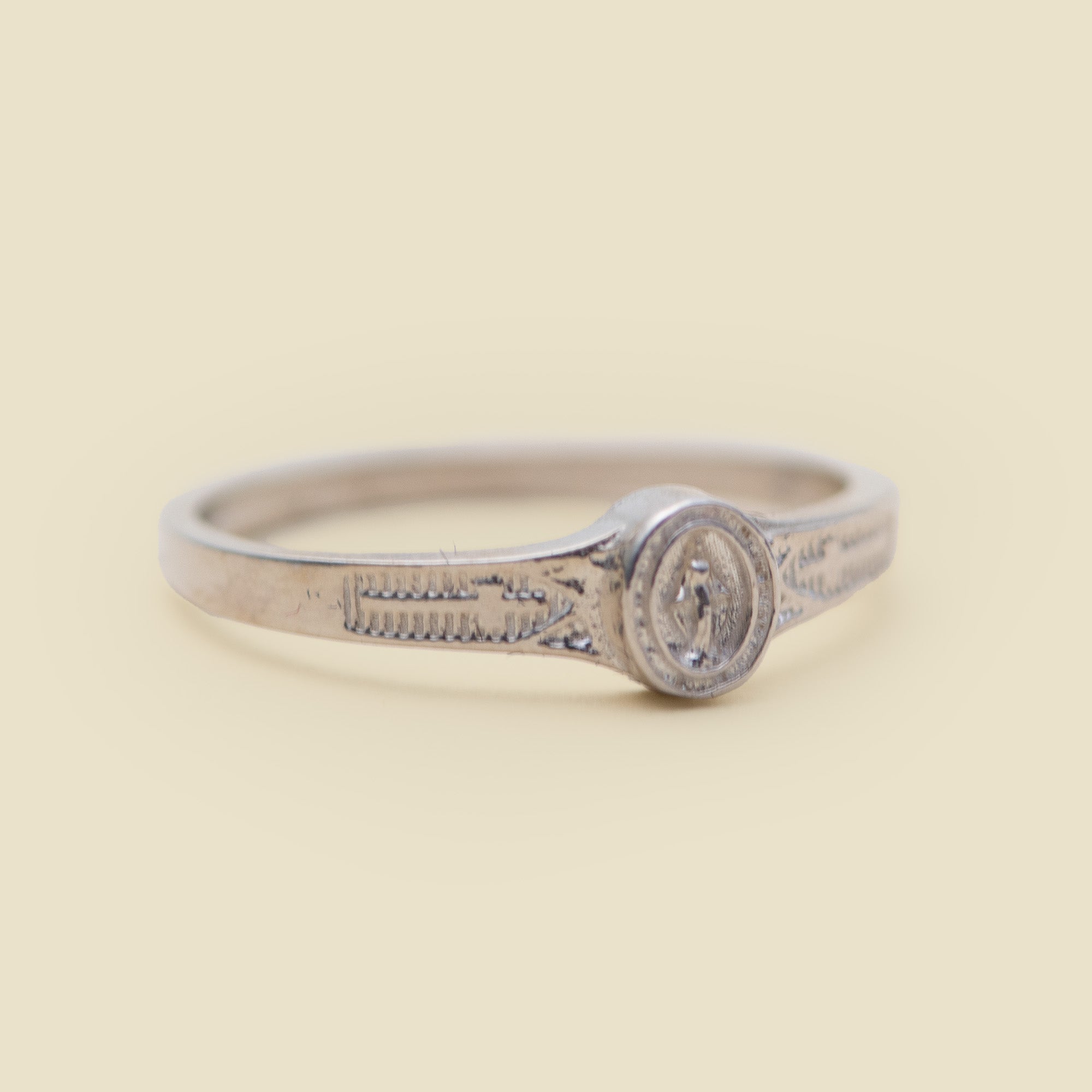Sterling Silver Miraculous Medal Ring with Blue Accent